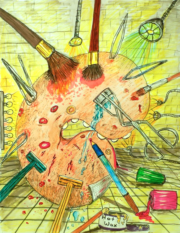 My art forms began to develop after moving to Bushwick in 2008. The shapes in the surrounding Graffiti dotted streets influenced my abstract pastel art and experimental drawings. The anthropomorphic forms that developed were the bases for the “Amoeba Comic” character. They stood for all human experiences with loneliness, love, change and delight binging eating, drinking, smoking and having sex.